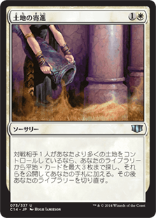 こいつら全部が「平地」でもあるのだ。サイクリング持ち3色の登場により3色以上の多色デッキにおける事故率が減ったが、「土地の寄進」を採用することでさらに土地事故への不安を減らしデッキ圧縮もできる。