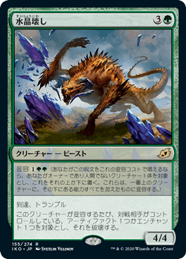 変容するコストは割と手頃でデメリット付きで相手のクリーチャー以外のパーマネントを破壊することができる。デメリットで出るビーストトークンも3/3バニラで処理しやすい。